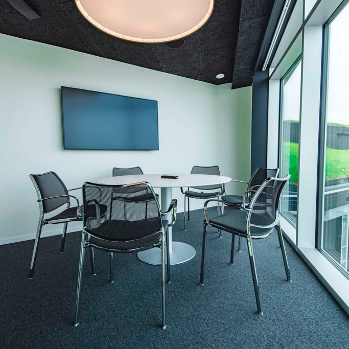 Klubbin is a smaller meeting room with a beautiful view of the park and Gundadalur. The room is ideal for smaller meetings of 4 – 6 participants, job interviews and the like. The room is equipped with a screen, flipchart, whiteboard, printer and all the equipment you might need.